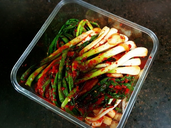 담근 파김치를 김치통에 차곡차곡 눌러 담고 실온(상온)에서 1~2일 익혀주세요. 새콤한 냄새가 올라오기 시작하면 냉장 보관으로 옮기면 됩니다. 담그자마자 바로 먹어도 맛있고, 적당히 익으면 새콤 칼칼한 맛이 더해져 밥 도둑이 됩니다.